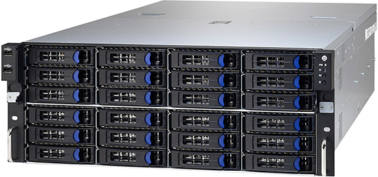 4U Dual Socket Xeon SP Storage Server, 24x 3.5" Hot-swap SAS 12G / SATA 6G Drive Bays at front, 2x 2.5" Hot-swap SAS 12G / SATA 6G Drive Bays at rear.