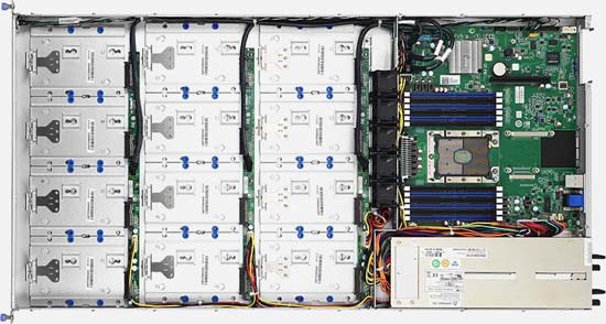 This server supports SATA drives, which are very cost-effective and adept at dealing with mass storage.