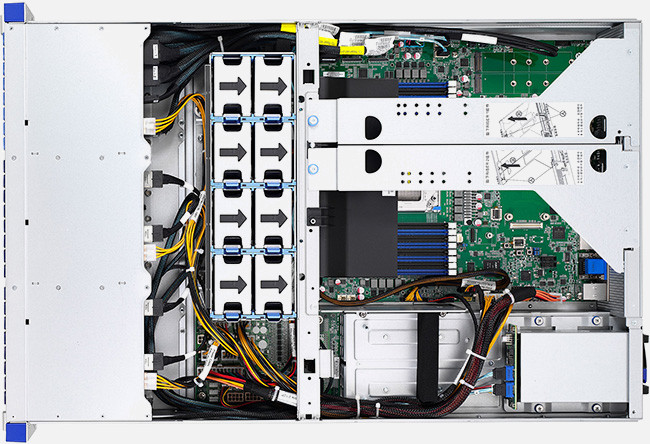 This server supports SATA drives, which are very cost-effective and adept at dealing with mass storage.