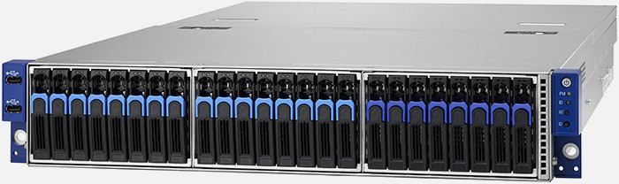 This server solution can be configured with 2.5" drives, which usually provide more energy efficiency, cost efficiency and boosted flexibility.