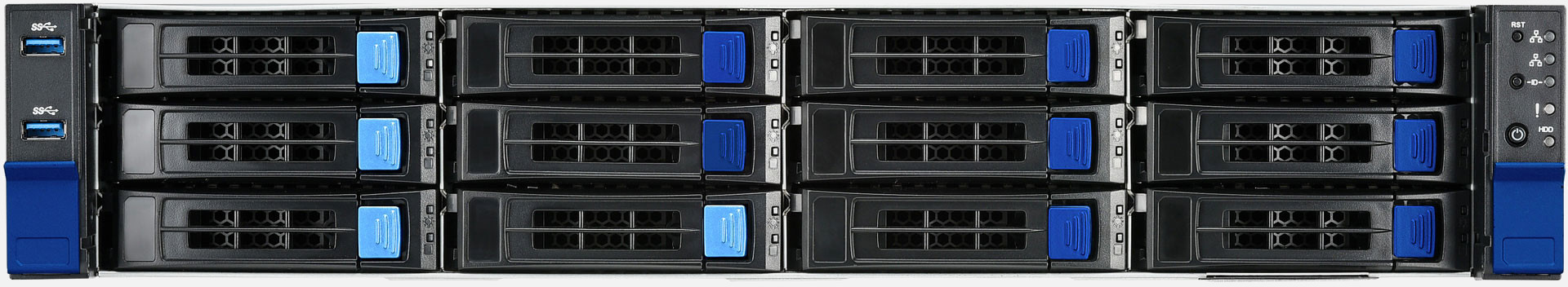2U1S Storage Server, hybrid NVMe/SAS/SATA BP, 12 SFF. 2x FH/HL PCIe Gen 5.0 x16 slots. 12x SATA/4x NVMe Hybrid hot swap drive bays, 12000W Redundant power supply.