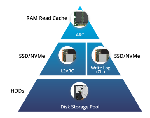 Broadberry ZFS Appliances feature tiered RAM, where data is stored on different types of media based on performance, recovery and availability requirement. Tiered storage improves operation efficiency and contributes to lowered cost.