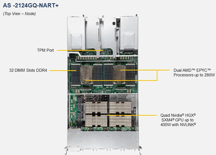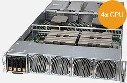 High Density 2U System with NVIDIA® HGX™ A100 4-GPU. Ideal for High-performance Computing (HPC) and Cloud Computing. 4 PCI-E Gen 4 x16 slots. Redundant power supply.