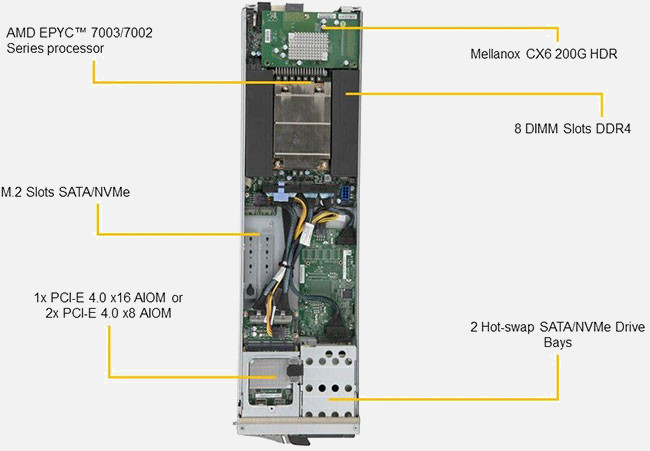 The Supermicro A+ SuperBlade Server System SBS-820H-4114S | SBS-820H-4114S features hot-swap hard drives, giving you more flexibility and allowing you to remove drives without having to shut down the system.