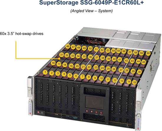 Configure the Supermicro SSG-6049P-E1CR60L+ SuperStorage | 6049P-E1CR60L+ with 3.5" drives. These drives are more cost-effective, offer a larger storage capacity and offer more flexibility.