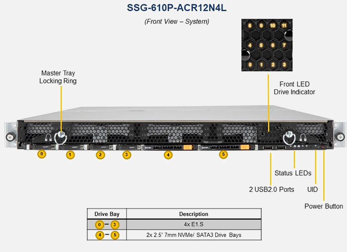 The Supermicro Storage SuperServer SSG-610P-ACR12N4L | SSG-610P-ACR12N4L features hot-swap hard drives, giving you more flexibility and allowing you to remove drives without having to shut down the system.
