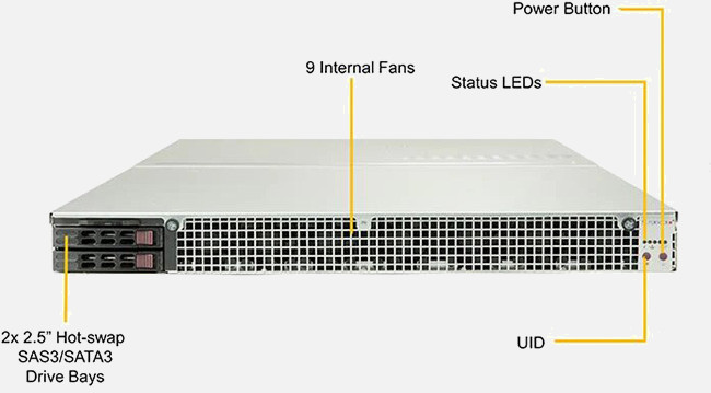 The Supermicro SuperServer 1029GQ-TRT-NEBS-DC | SYS-1029GQ-TRT-NEBS-DC can be configured with 2.5" drives, a more space efficient and low noise option. These drives also offer energy savings and increased flexibility.