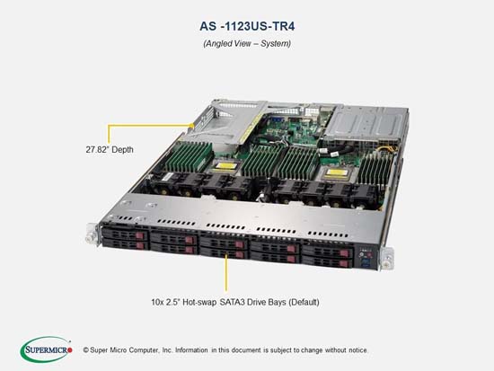 The Supermicro SuperServer 1123US-TR4 | AS-1123US-TR4 can be configured with 2.5" drives, a more space efficient and low noise option. These drives also offer energy savings and increased flexibility.