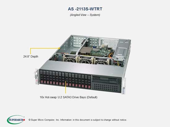 The Supermicro SuperServer 2113S-WTRT | AS-2113S-WTRT can be configured with 2.5" drives, a more space efficient and low noise option. These drives also offer energy savings and increased flexibility.