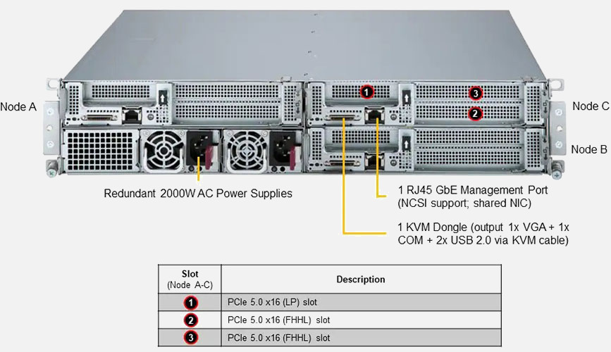 Single 4th Gen Intel Xeon Scalable processor, Ideal for Multi-Access/Enterprise Edge Computing, Telecom DRAN, CRAN, and Edge Core Application. Up to 6x PCI-E 5.0 x16 FHHL slots, 2x PCI-E 5.0 x16 LP slots. Redundant 2000W Power Supply.
