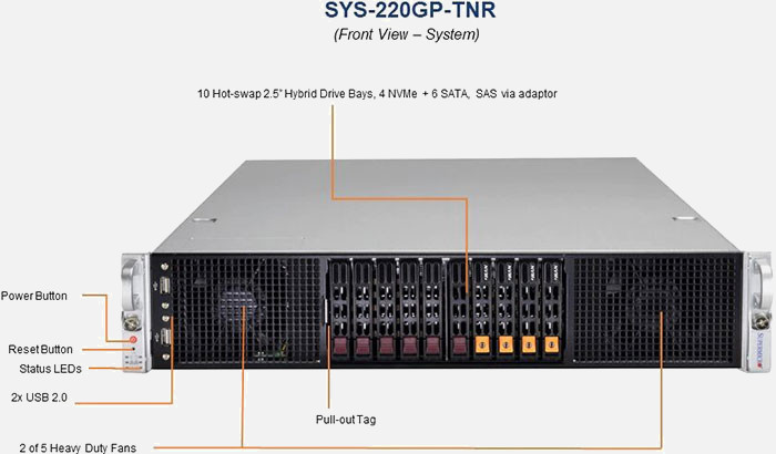 The Supermicro GPU SuperServer SYS-220GP-TNR | SYS-220GP-TNR features hot-swap hard drives, giving you more flexibility and allowing you to remove drives without having to shut down the system.