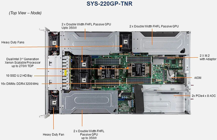 The Supermicro GPU SuperServer SYS-220GP-TNR | SYS-220GP-TNR can be configured with 2.5" drives, a more space efficient and low noise option. These drives also offer energy savings and increased flexibility.