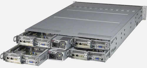 4 node system ideal for big data/big science, hyperconverged infrastructure and HPC. 2x PCI-E 4.0 x16 slots, 1x PCI-E 4.0 x8 slot and 16 DIMMs of memory per node.