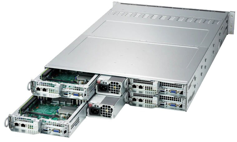 4 node system ideal for big data/big science, hyperconverged infrastructure and HPC. Intel X710 Dual port 10GBase-T LAN onboard per node. 2x PCI-E 4.0 x16, 1x PCI-E 4.0 x8 slots.