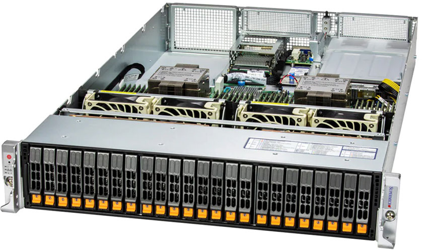 Ideal for virtualisation, AI, cloud computing, enterprise server. Up to 4x PCI-E 5.0 x16 slots, 4x PCI-E 5.0 x8 slots. Redundant 800W/1200W Titanium Power Supply, 24x 2.5" hot-swap NVMe/SATA/SAS drive bays