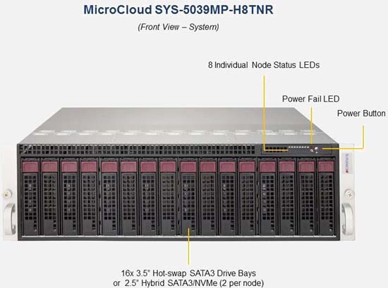Built as a Microcloud server, the Supermicro MicroCloud modular server system delivers 12 modular server nodes conveniently integrated into a 29" deep chassis.