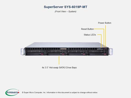 The Supermicro SuperServer 6019P-MT | SYS-6019P-MT features hot-swap hard drives, giving you more flexibility and allowing you to remove drives without having to shut down the system.
