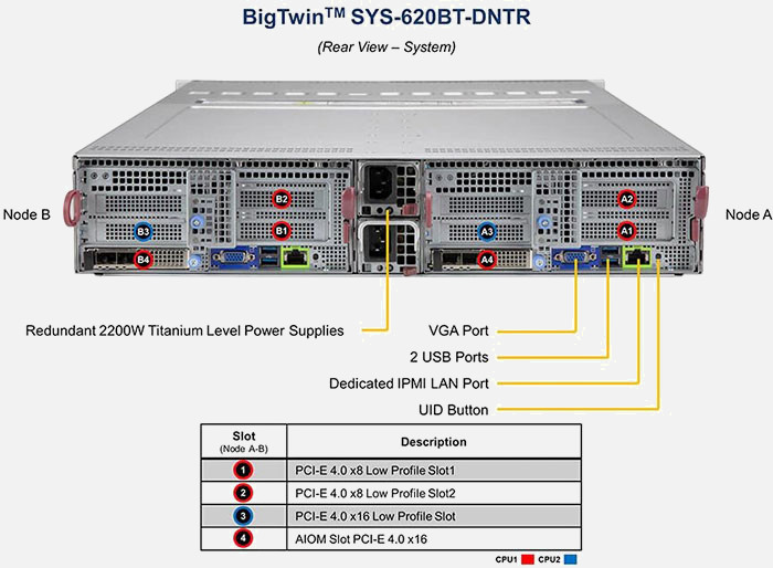 Two hot-pluggable systems (nodes) in a 2U form factor. 3rd Gen Intel® Xeon® Scalable processors. Redundant power supply.
