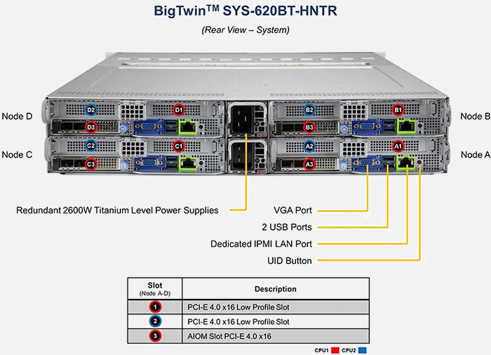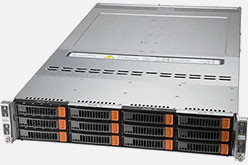Four hot-pluggable systems (nodes) in a 2U form factor. 8 PCI-E 4.0 x16 (LP) slots. Redundant power supply. Liquid Cooling Support.