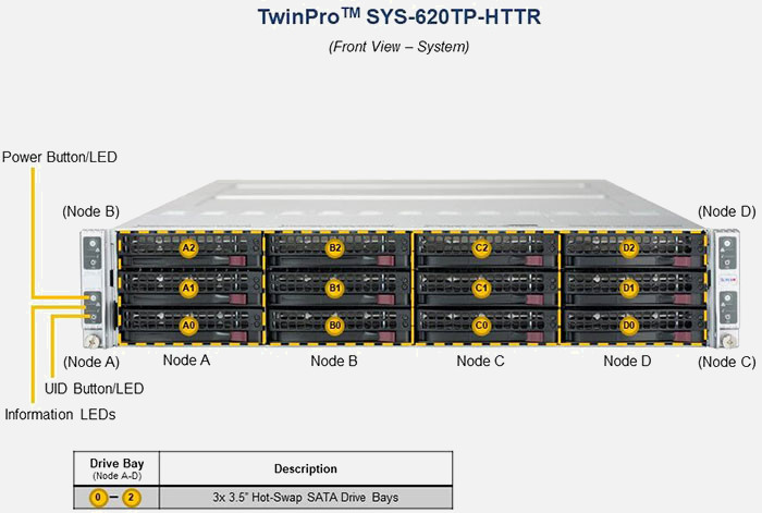 The Supermicro Twin SuperServer SYS-620TP-HTTR | SYS-620TP-HTTR features hot-swap hard drives, giving you more flexibility and allowing you to remove drives without having to shut down the system.