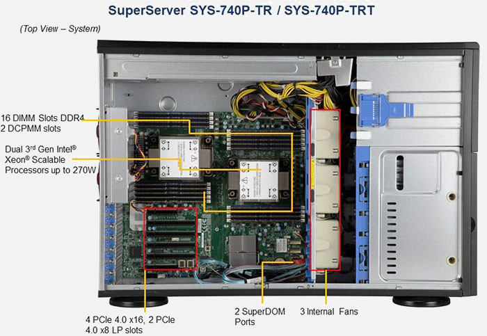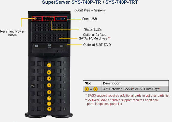 The Supermicro SuperServer SYS-740P-TRT | SYS-740P-TRT features hot-swap hard drives, giving you more flexibility and allowing you to remove drives without having to shut down the system.