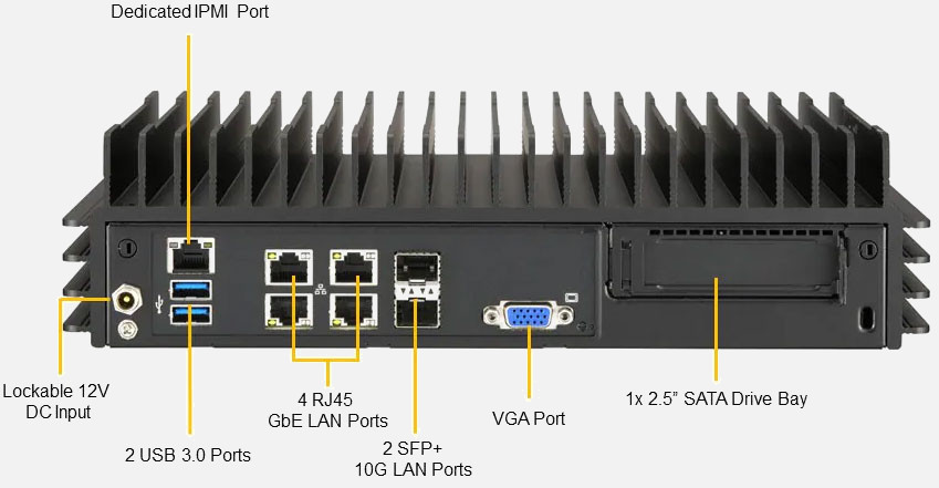 The Supermicro IoT SuperServer E302-12A-4C | SYS-E302-12A-4C can be configured with 2.5" drives, a more space efficient and low noise option. These drives also offer energy savings and increased flexibility.