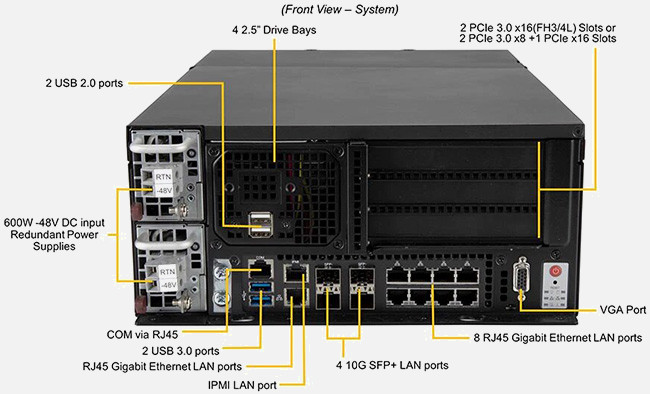 Optimised for Multi-Access Edge Computing (MEC), Network Function Virtualisation (NFV), Edge Computing and more. 2 PCI-E 3.0 x16. 9 GbE (one for Ethernet management), 4x 10G SFP+, 1 Dedicated IPMI LAN port.