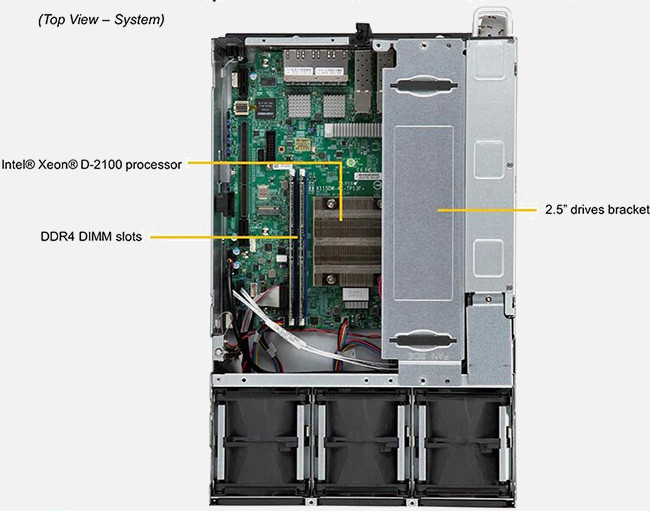 The Supermicro SuperServer E403-9D-16C-FRN13+ | SYS-E403-9D-16C-FRN13+ can be configured with 2.5" drives, a more space efficient and low noise option. These drives also offer energy savings and increased flexibility.