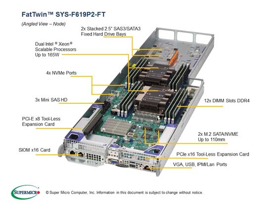 The Supermicro SYS-F619P2-FT SuperServer | F619P2-FT can be configured with 2.5" drives, a more space efficient and low noise option. These drives also offer energy savings and increased flexibility.