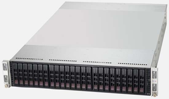 The Supermicro SuperStorage Server 2027R-E1R24L | SSG-2027R-E1R24L can be configured with 2.5" drives, a more space efficient and low noise option. These drives also offer energy savings and increased flexibility.