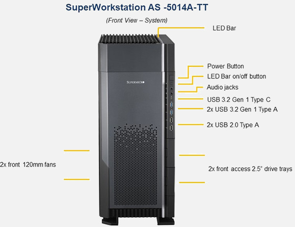 A Supermicro SuperServer based on 1x AMD range of processors, the Supermicro A+ SuperWorkstation 5014A-TT | AS-5014A-TT is configurable with up to 6x Fixed Drives drive bays, and designed for optimal performance with 8x 3200Mhz DDR4 memory sockets .