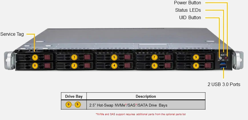 The Supermicro UP SuperServer 1115SV-WTNRT | AS-1115SV-WTNRT features hot-swap hard drives, giving you more flexibility and allowing you to remove drives without having to shut down the system.