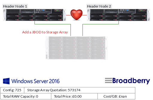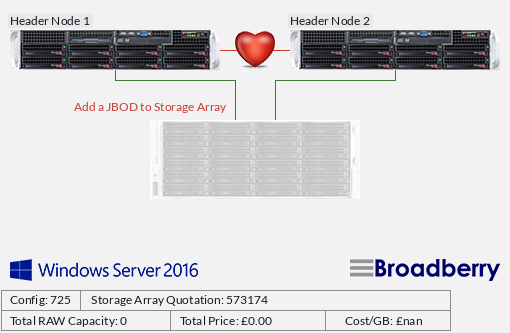 Each clustered server (referred to as a 'node') are connected by external SAS cables and the Windows Storage Server 2016 software. In event of one of these nodes failing another node takes over in providing the service with very little disruption to the uers, this is known as failover.