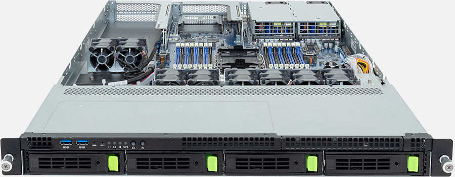 Single Intel Xeon 6 Series processors, Supports 1x Dual slot Gen5 GPU, redundant power supply, 4x 3.5"/2.5" NVMe/SATA/SAS hot-swappable bays.
