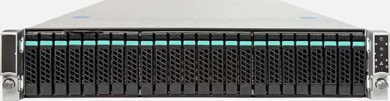 The CyberServe R2224WTTYSR v4 supports 24x 2.5" desktop and enterprise-class SATA hard drives, which represents the best cost per GB ratio storage technology.