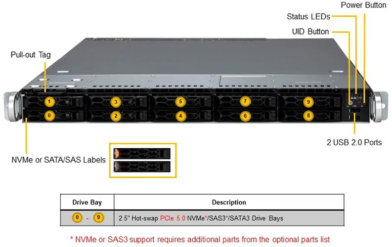 The CyberServe Xeon SP1 110S Server *In-Stock* boasts high density storage and ultimate energy efficiency, catering for up to 10x High-Performance 2.5" SSD or Hard Drives
