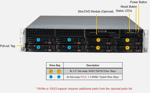 This system can be configured with SATA drives for cost-effective 12gb/s storage.