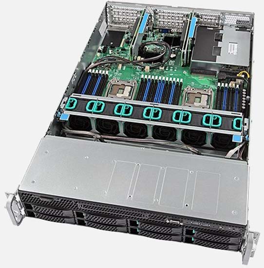 Ready for the most demanding enterprise applications, the Broadberry CyberServe Xeon SP2-R2312 can be configured with up to 24 DDR4 ECC Registered memory modules.